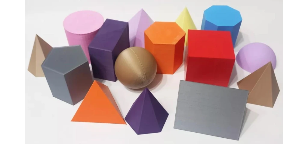 15 cuerpos geométricos construidos en plástico con máquinas 3D, con excelente terminación