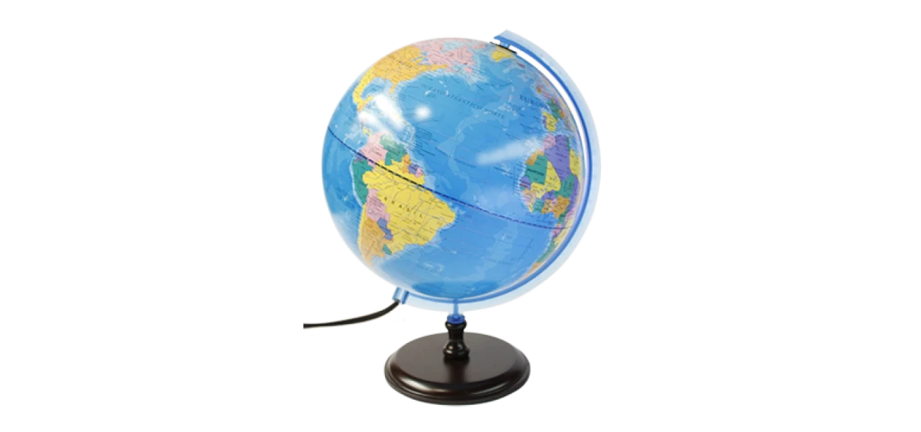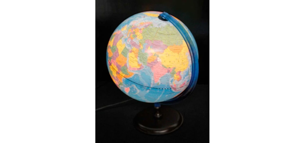 - Ø 25 cm. de diámetro- Esfera de plástico- Base de madera- Político- CON LUZ