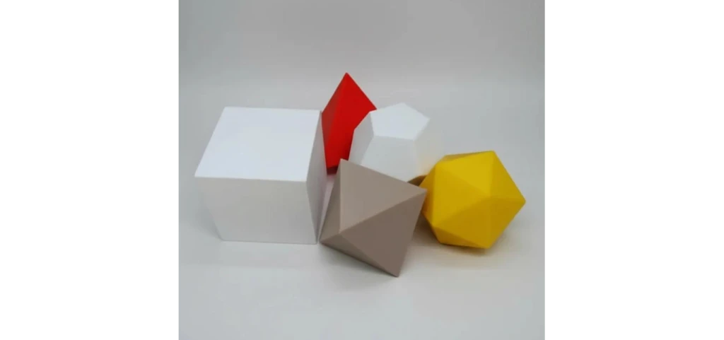 Dodecaedro 12 caras pentagonales, asociado al cosmos o al éter.
