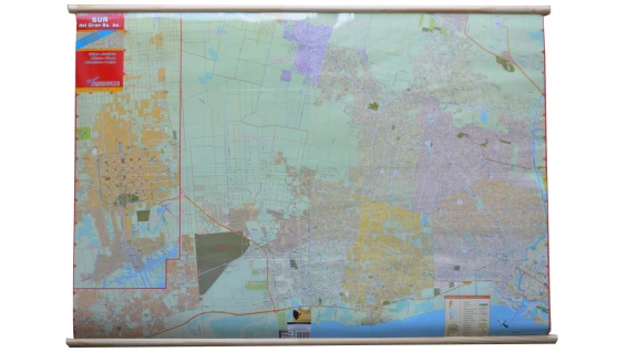 Detalla todas sus calles, avenidas, autopistas, peajes, alturas, salidas, plazas y lugares de interés en forma clara y exhaustiva. Incluye sus museos, sus lugares históricos y edificios públicos, hospitales y countrys, red de FFCC con sus estaciones. Cuenta con división de partidos y localidades.